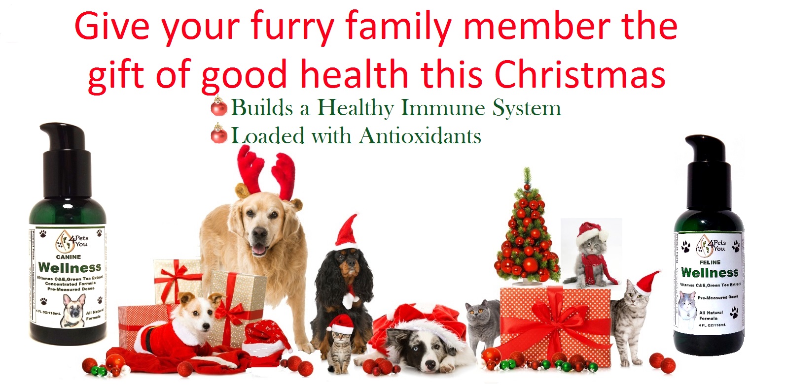 What a better time to start your furry friend dog, cat or both on a Wellness supplement that is beneficial to their health.  Why not give your pet Wellness supplement for Christmas, it’s the perfect time to start improving the health of your pet. Our Wellness supplement is Nutrient-Rich, it’s packed with vitamins, amino acids, antioxidants and immune system building blocks like Vitamin C & Vitamin E, Glycine, Glutamic Acid, Green Tea, and Arginine.